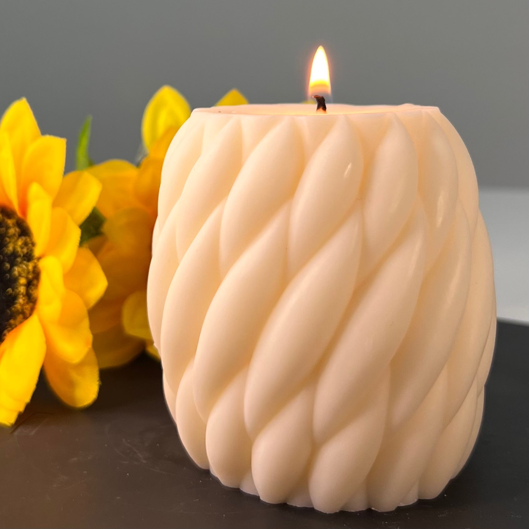 Una forma intrecciata che ricorda la trama di un maglione di lana caldo e morbido.